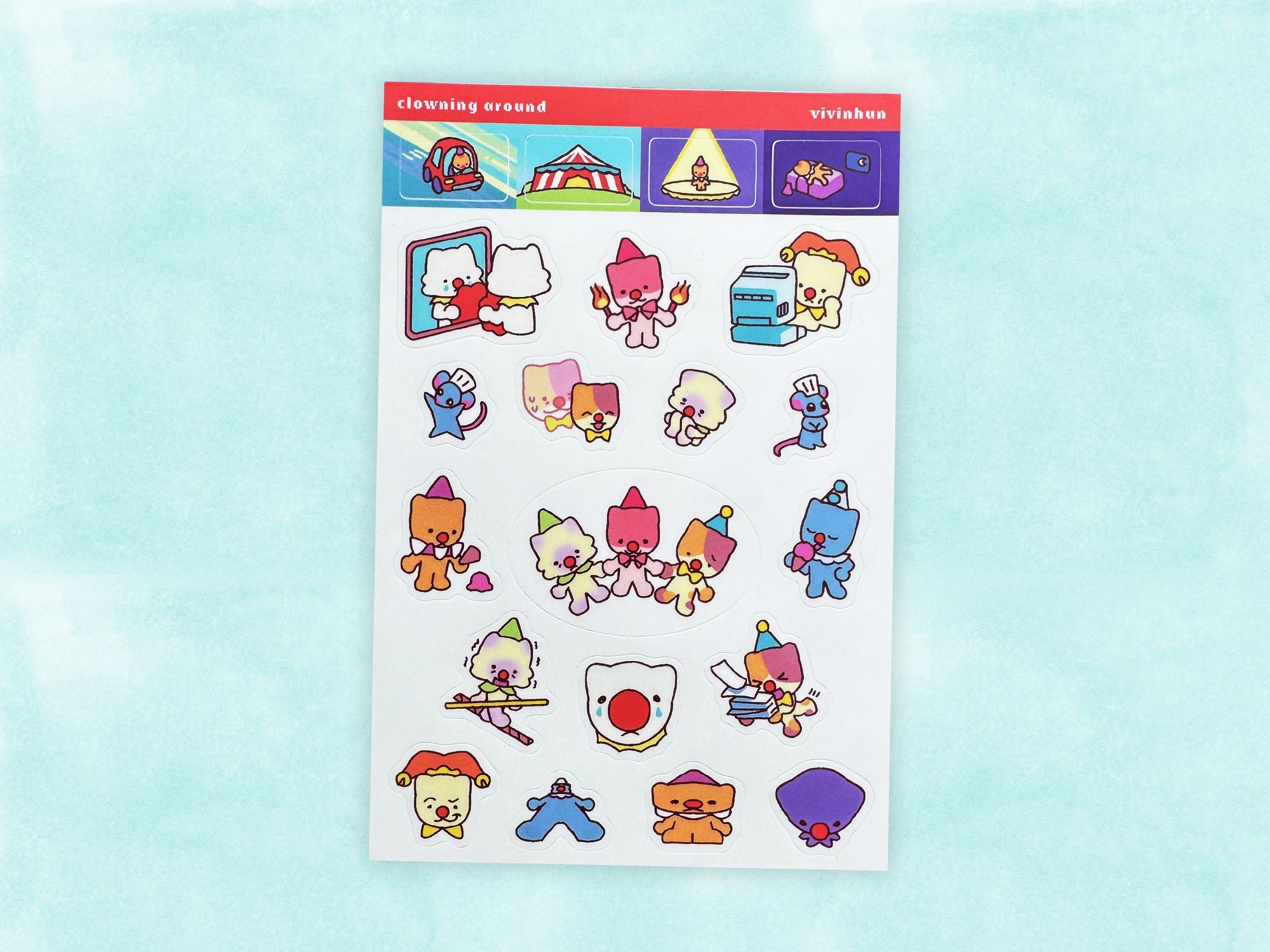 clown cat sticker sheet